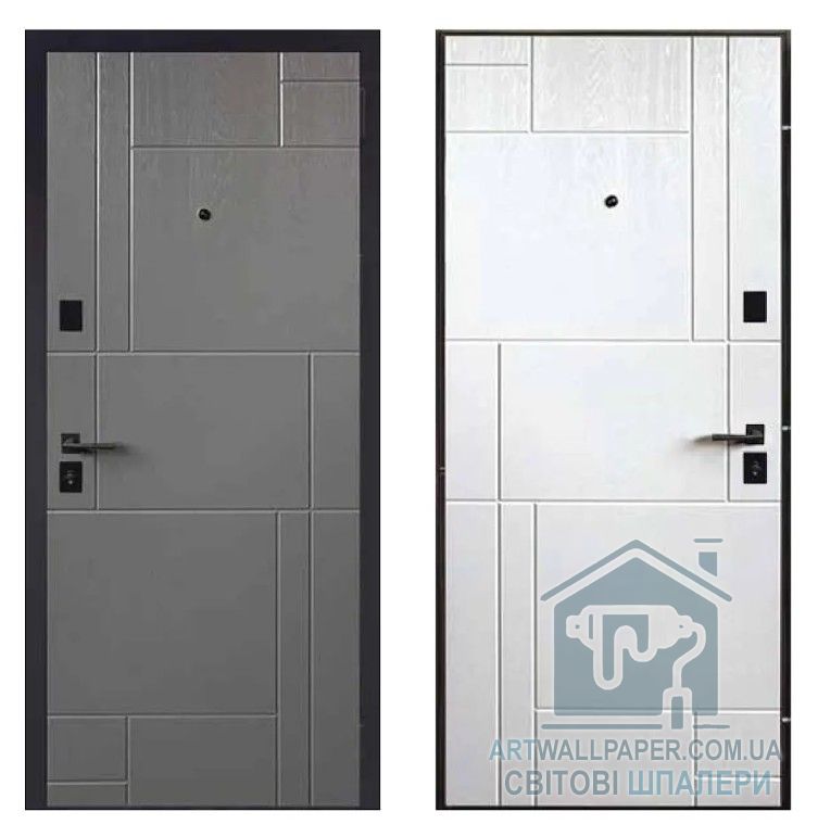 Двері вхідні, Тип-12.2 КВАРТИРА, Антрацит 156 / Супермат Білий 156 Чорна Фурнітура 860 L, 148343