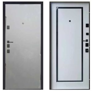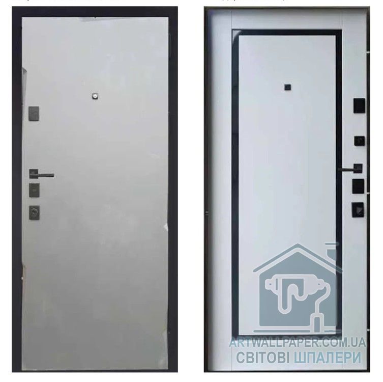 Двері вхідні, Тип-13 КВАРТИРА, Мусонне дерево софт.300 / Емаль Біла 639.1 Чорна Фурнітура 860 R RAL 9005, 153743