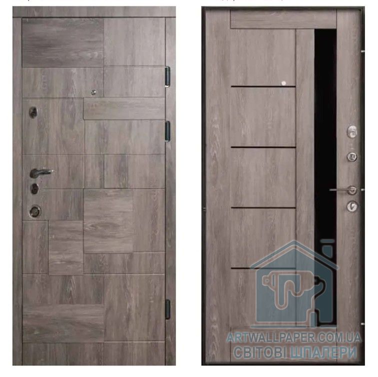 Двері вхідні, Тип-3 КВАРТИРА, Дуб шато Еко 601 / Дуб шато Еко 605.1 Грета BLK Чорна Фурнітура 860 R NEW, 152569