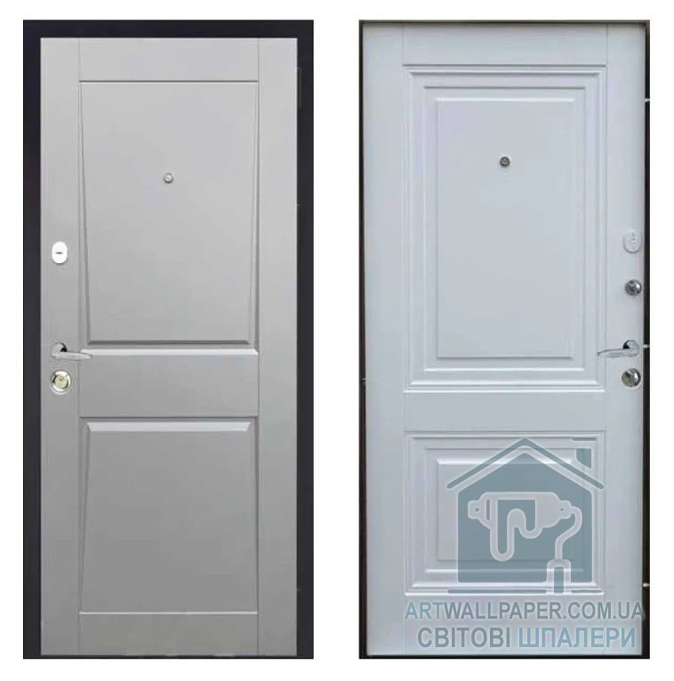 Двері вхідні, Тип-3 КВАРТИРА, Елегант Сірий софт 338 / Супермат Білий 613 960 L RAL9005 NEW, 139533