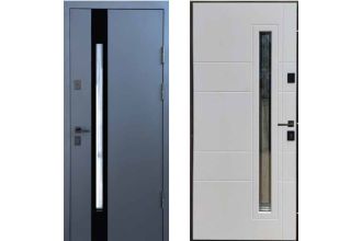 Двері вхідні, Тип-4 ВУЛИЦЯ, 815 метал RAL R021 / Біле Дерево 146 Структура №1 Чорна Фурнітура 860 R NEW RAL R021, 152574