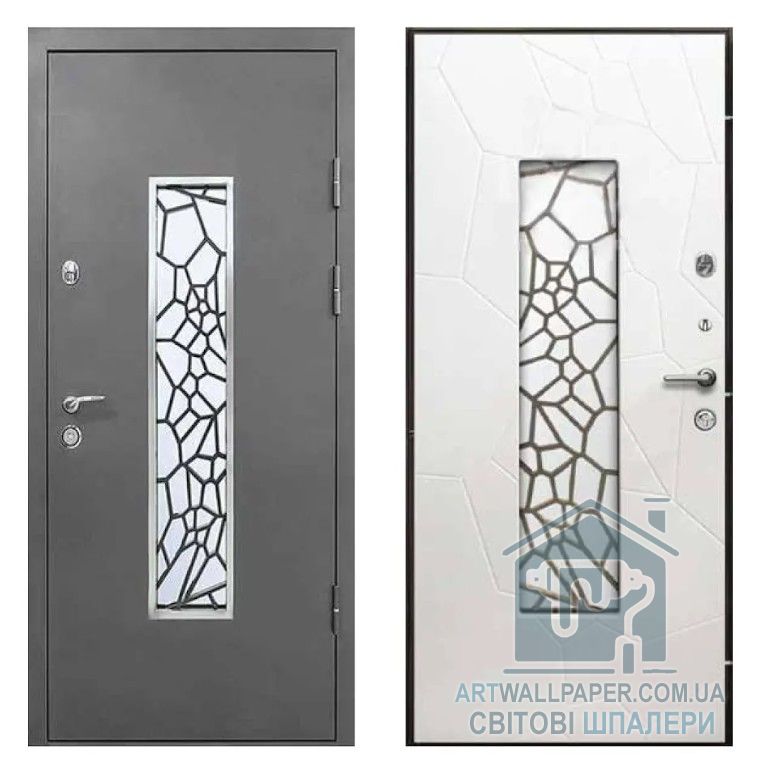 Двері вхідні, Тип-4 ВУЛИЦЯ, метал RAL R021 / Біле Дерево 142 Вінорит 960 R Сірий короб RAL R021 K19 NEW, 146456