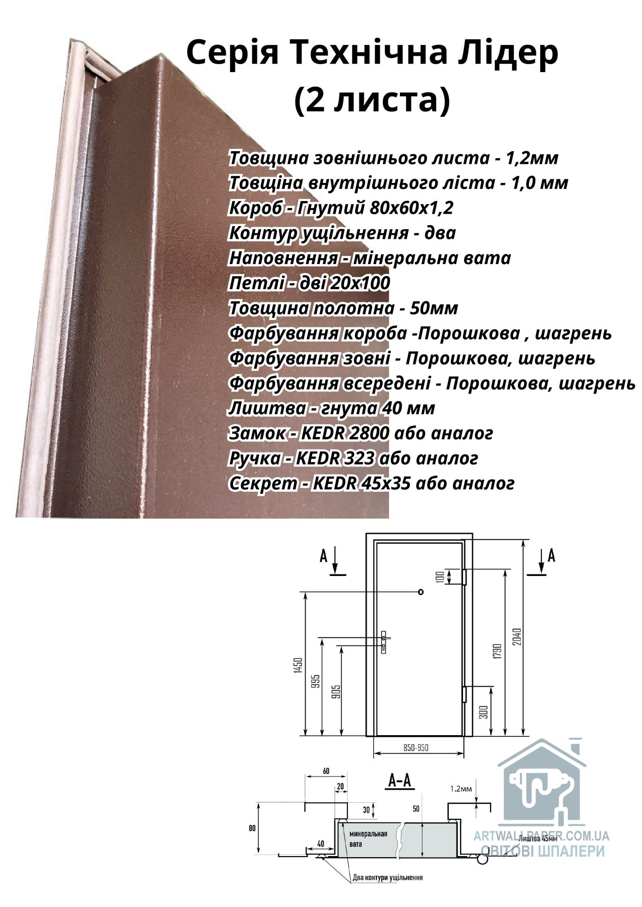 Модель:ЛІДЕР ДВУХЛИСТОВА Метал/Метал КОРИЧНЕВИЙ